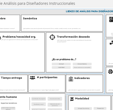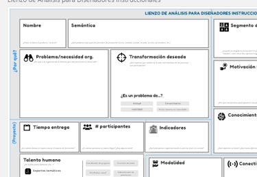 Usa este lienzo cuando desees explorar por qué una organización quiere crear una formación, qué espera lograr, quiénes son tus estudiantes y qué restricciones y riesgos debes considerar.