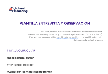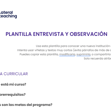 Usa esta plantilla cuando quieras conocer una nueva institución y saber qué preguntar/observar: normas, ubicación, condiciones, etc.