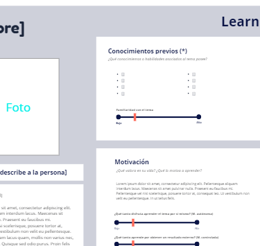 Usa esta plantilla para crear prototipos (perfiles ficticios) que describen las principales motivaciones, hábitos y características socio-demográficas de tus estudiantes.